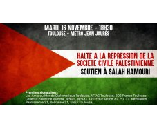 Nous vous invitons à nous rejoindre pour dénoncer les récentes décisions des autorités israéliennes : Le 18 octobre, Israël annonce la révocation du statut de résident de Jérusalem du Franco Palestinien Salah Hamouri, un des principaux avocats de l’ONG Addameer, qui défend les prisonniers palestiniens en Israël. Le 19 octobre, six ONG palestiniennes - Addameer, Al-Haq, le Centre Bisan, Défense (…)