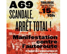 En réaction à la décision de justice inédite, le 9 décembre, de la réouverture de l’instruction judiciaire , concernant le projet A69, et afin de dénoncer le report sans date précise du jugement, ce qui laisse au chantier le temps d’aggraver ses destructions, les collectifs en lutte contre cette autoroute appellent à manifester ce dimanche 15 décembre à 15h, en haut des allées Jean Jaurès, à Toulouse afin de soutenir la demande de (…)