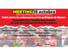 À la suite de plusieurs rencontres depuis cet été des partis politiques de gauche opposées aux ordonnances Macron. 7 organisations (EELV, Ensemble !, GDS, M1717, NPA, PCF et PG) organisent un meeting unitaire le 19 octobre à 20 h salle des allées de Barcelone à Toulouse sous le titre "Unité contre les ordonnances Macron et ses politiques". Prendrons la (…)