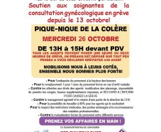 La grève se poursuit à la consultation gynécologique de Purpan. Pour rappel, les infirmières et les aides-soignantes de la consultation gynécologique du pôle Femmes Mères Couple ont débuté jeudi 13 octobre un mouvement de grève illimité face à la dégradation dramatique de leurs conditions de travail. La direction de l’hôpital n’a, à l’heure actuelle, reculé sur rien et a une attitude (…)