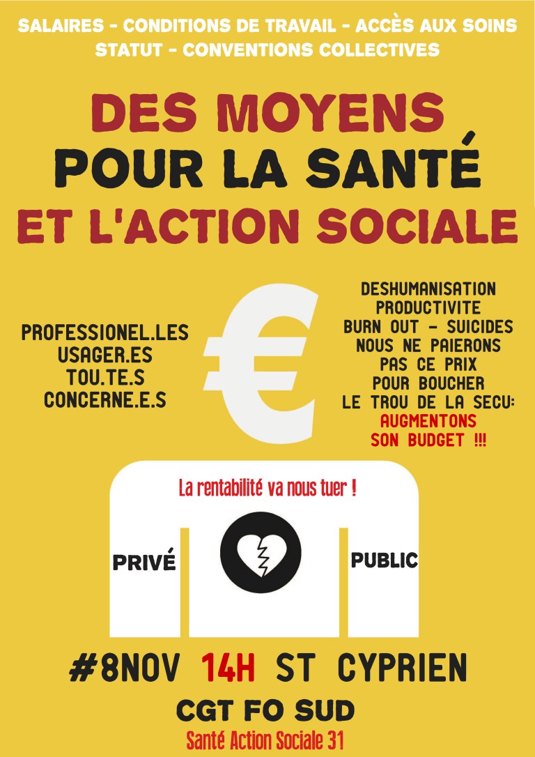 Le 8 Novembre prochain, les fédérations de la santé CGT SUD et FO appellent à une journée nationale de grève et de manifestations. C’est l’occasion de coordonner les luttes qui se développent dans toutes les régions.