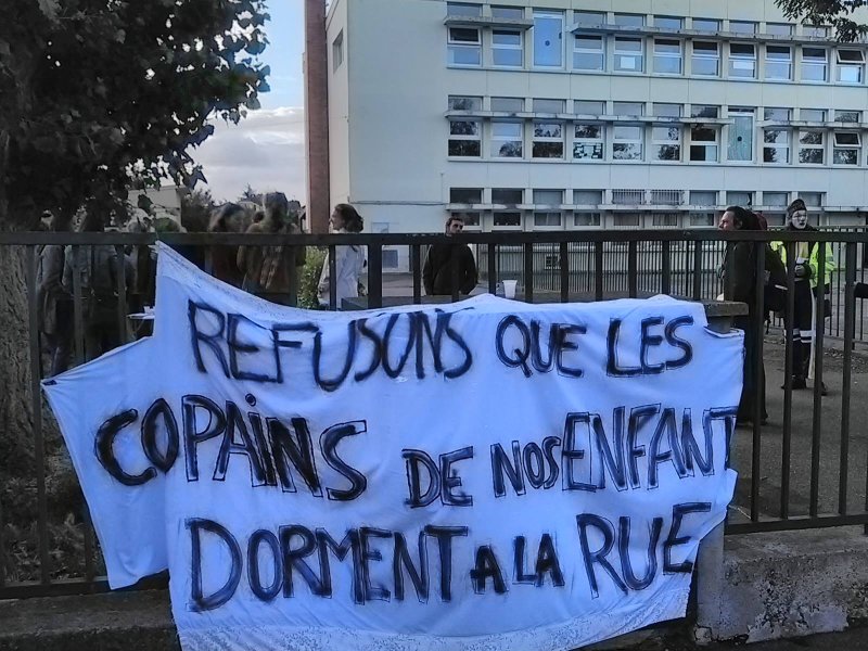 Après plusieurs actions d’interpellation, la campagne Un toit pour apprendre face au déni de la Préfecture et la Mairie avait décidé ce jeudi matin très tôt de planter ses tentes devant l’école Elementaire Marie Curie.
