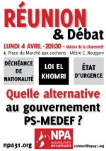 Vendredi 10 juin - 19h30 - Local du NPA 31 (9, rue Corneille - M° Arènes