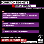 2 février 2024Le samedi 10 février prochain, le NPA organise une formation féministe et anticapitaliste à Toulouse.